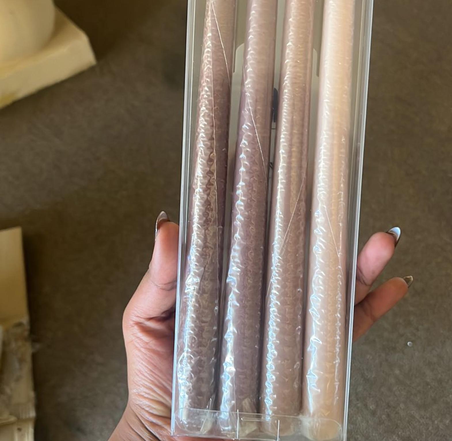 Illuminate your space with our exquisite Taper Candles, available in two stunning colors: rich Chocolate and delicate Pink. The Chocolate Taper Candle offers a luxurious, deep hue that brings warmth and sophistication, ideal for creating a cozy ambiance during intimate dinners or special occasions. In contrast, the Pink Taper Candle adds a soft, romantic touch, perfect for celebrations, weddings, or simply brightening up your everyday decor. Crafted from high-quality wax, both candles ensure a clean and even burn, fitting seamlessly into standard taper candle holders. Whether used individually or together for a striking contrast, these taper candles are perfect for dining tables, mantels, or decorative arrangements. Enhance your home with the inviting glow and beautiful colors of our Taper Candles, making them a wonderful addition to any setting or a thoughtful gift for loved ones.