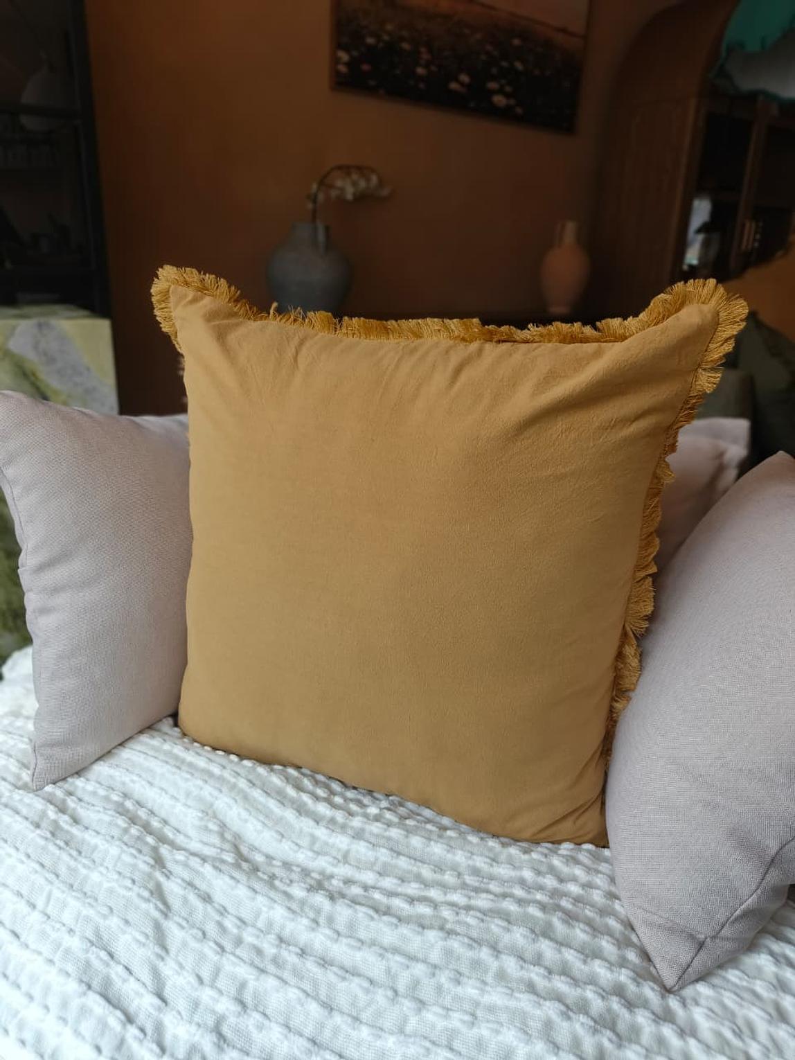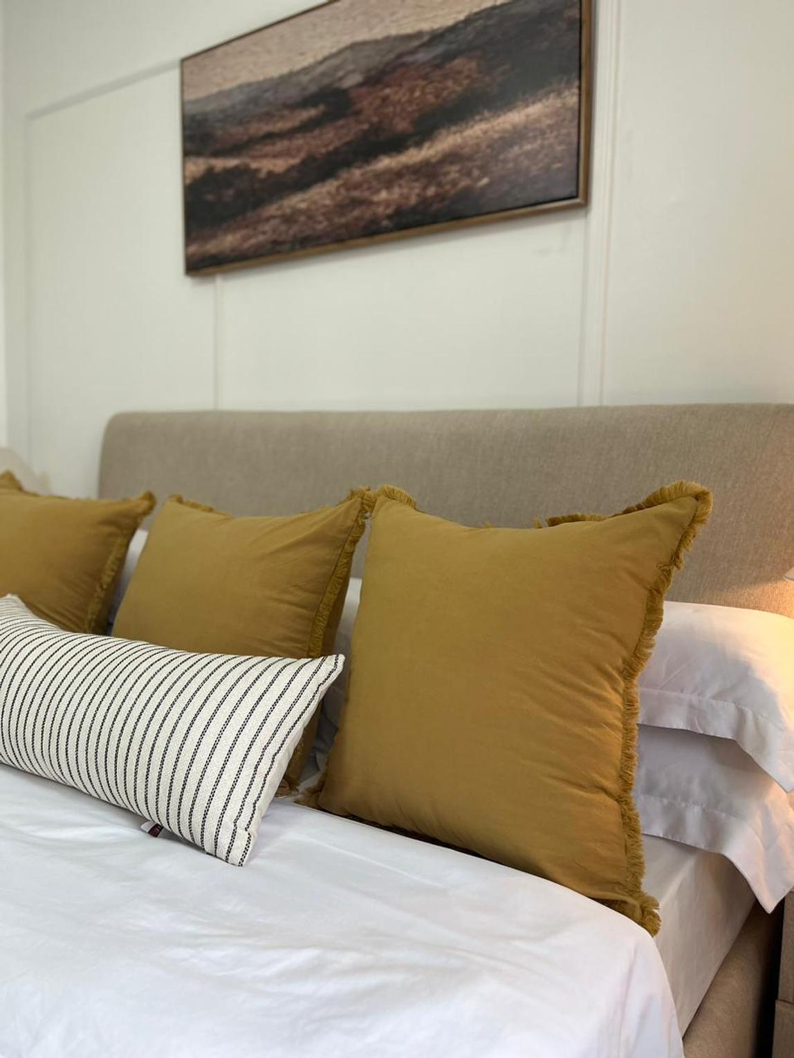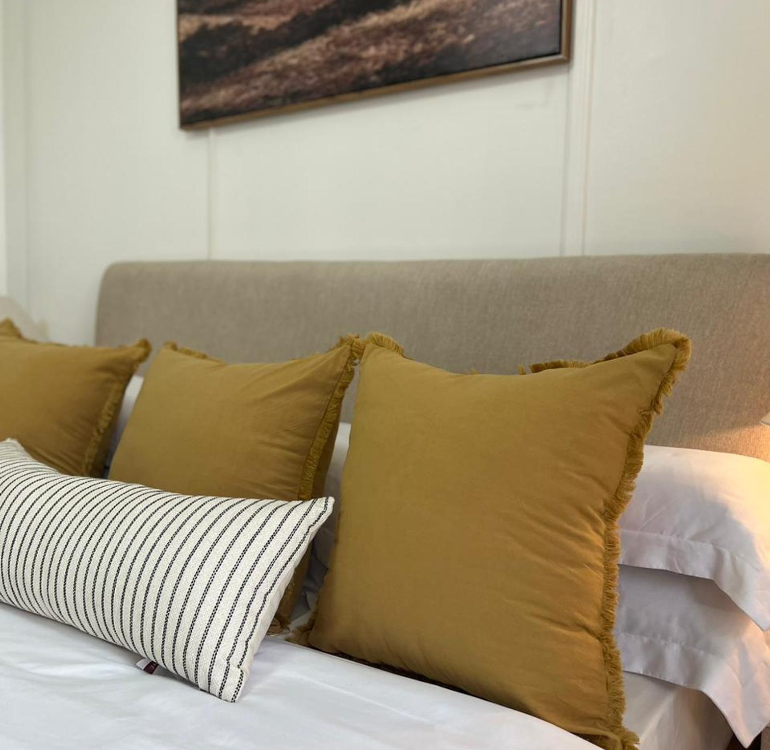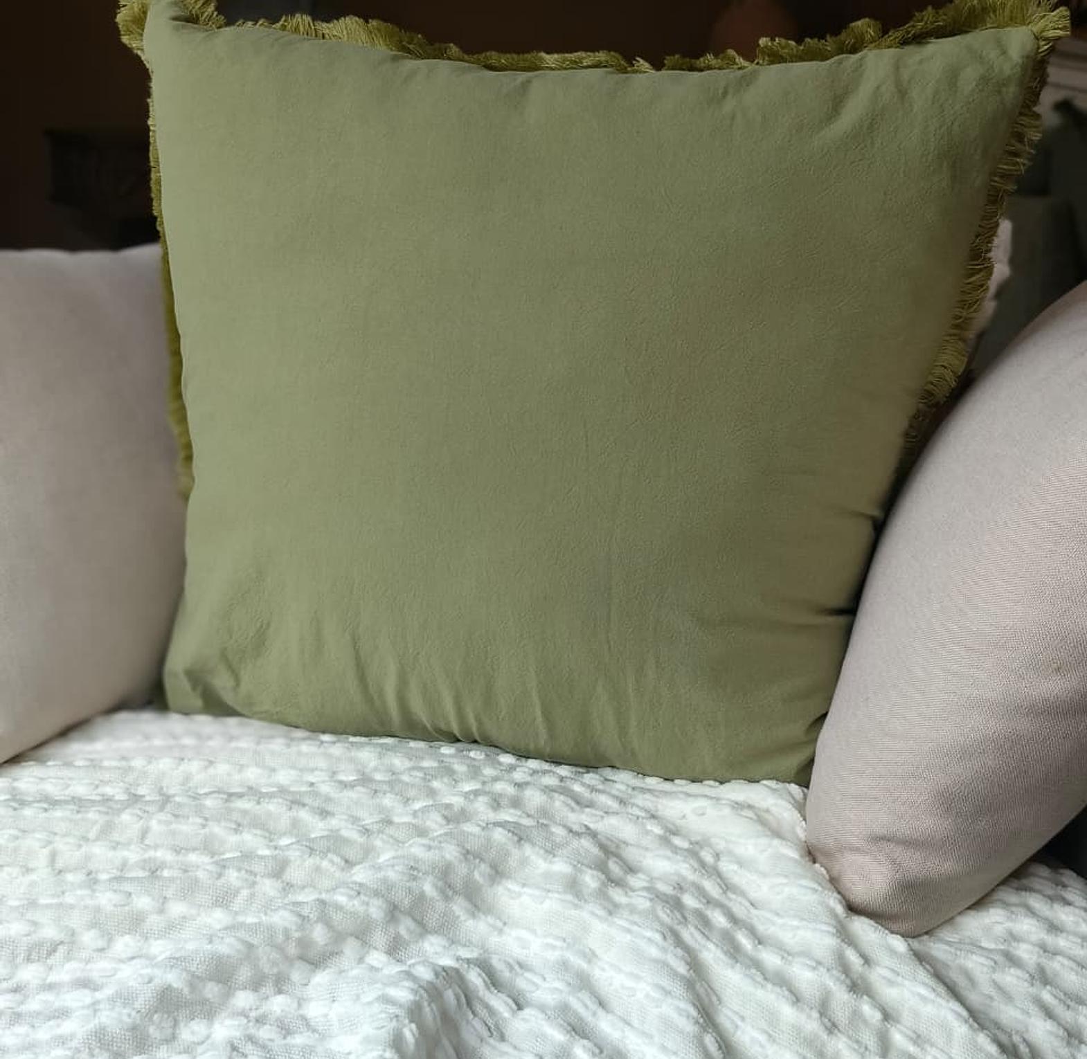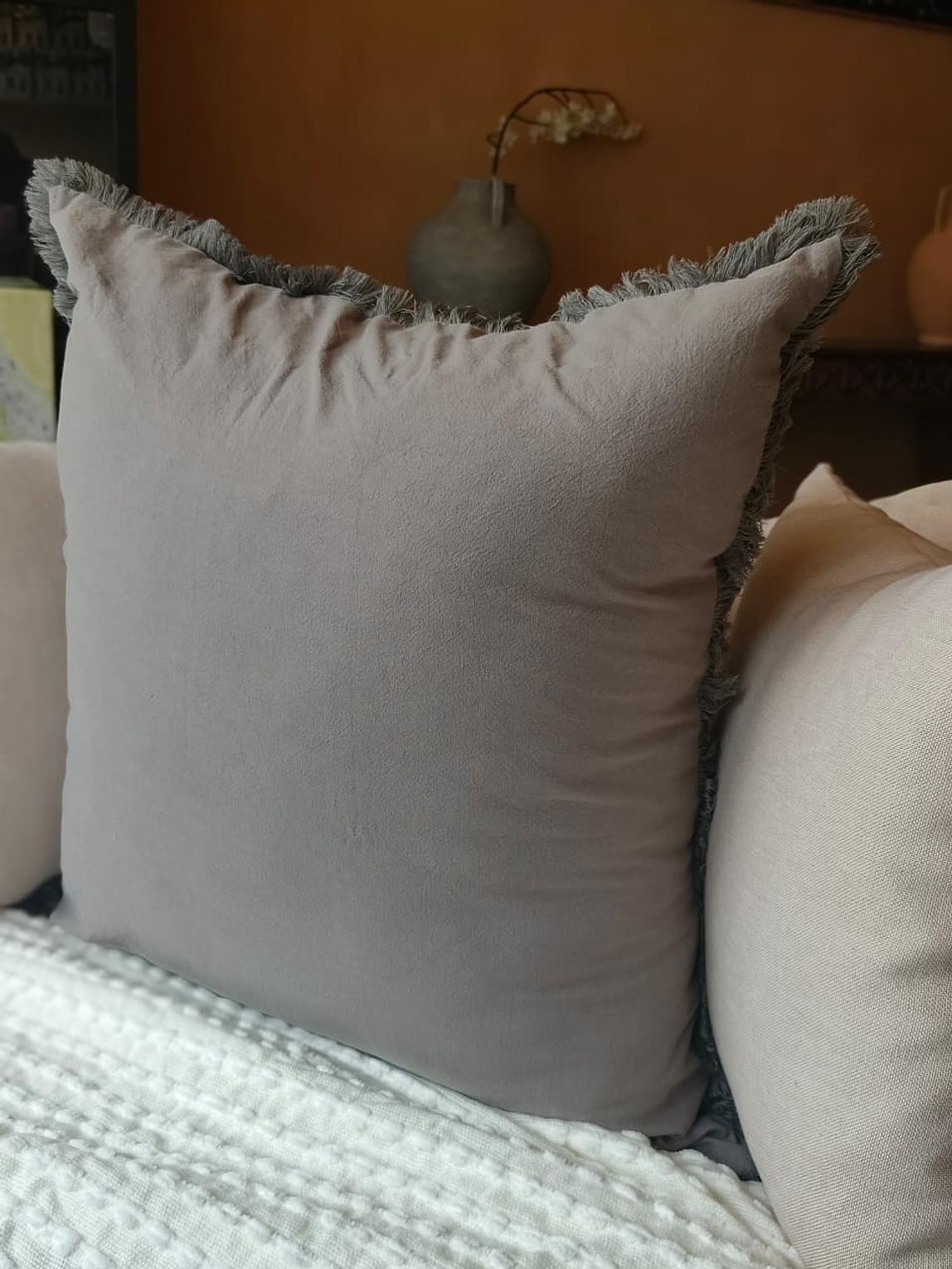 (CASE + FIBER INSERT) Elevate your space with the quiet charm of our Linen/velvet Ruffle Pillows
