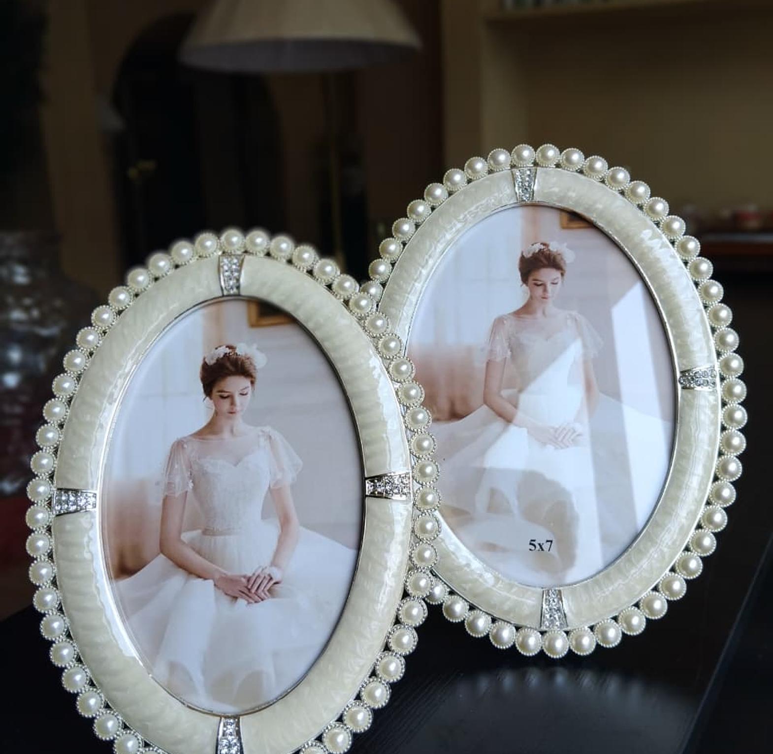 Add a timeless charm to your space with this elegant oval photo frame, adorned with pearl accents and a soft ivory finish. Perfect for highlighting cherished memories with a touch of vintage grace.