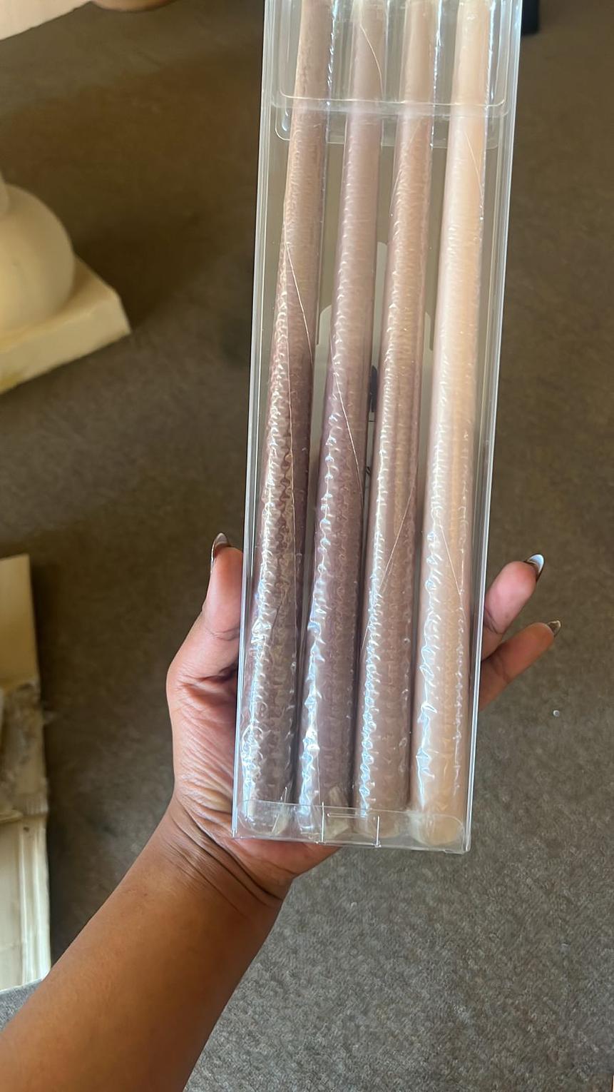 Illuminate your space with our exquisite Taper Candles, available in two stunning colors: rich Chocolate and delicate Pink. The Chocolate Taper Candle offers a luxurious, deep hue that brings warmth and sophistication, ideal for creating a cozy ambiance during intimate dinners or special occasions. In contrast, the Pink Taper Candle adds a soft, romantic touch, perfect for celebrations, weddings, or simply brightening up your everyday decor. Crafted from high-quality wax, both candles ensure a clean and even burn, fitting seamlessly into standard taper candle holders. Whether used individually or together for a striking contrast, these taper candles are perfect for dining tables, mantels, or decorative arrangements. Enhance your home with the inviting glow and beautiful colors of our Taper Candles, making them a wonderful addition to any setting or a thoughtful gift for loved ones.