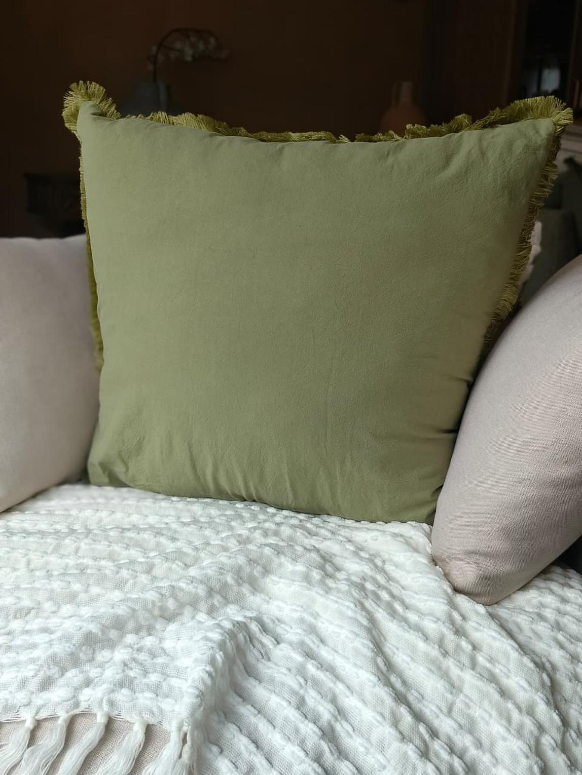 (CASE + FIBER INSERT) Elevate your space with the quiet charm of our Linen/velvet Ruffle Pillows