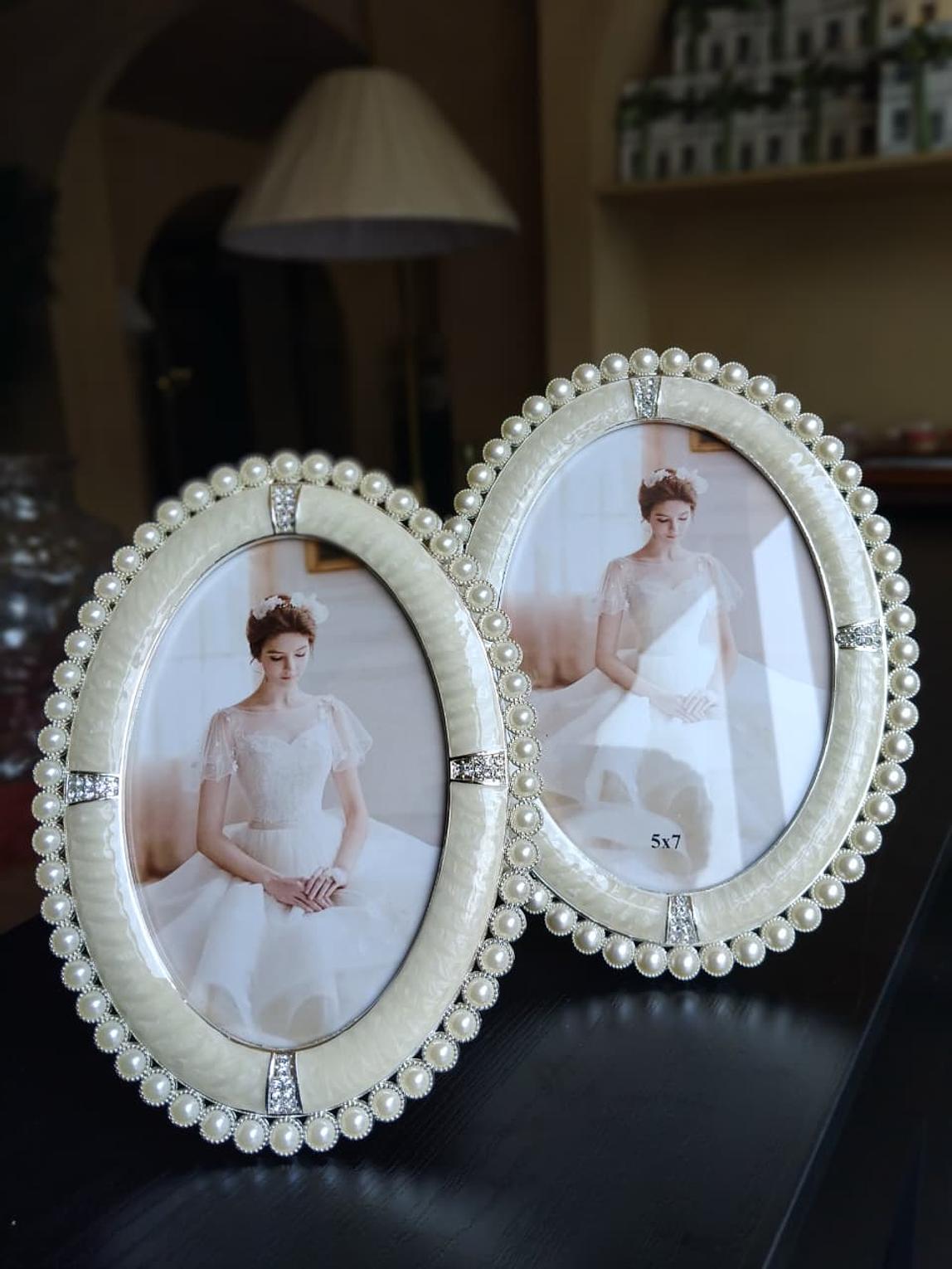 Add a timeless charm to your space with this elegant oval photo frame, adorned with pearl accents and a soft ivory finish. Perfect for highlighting cherished memories with a touch of vintage grace.